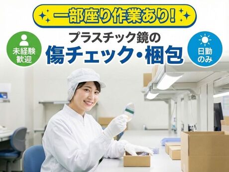 【ア】一部座り作業あり!プラスチック鏡の傷チェック・梱包◆未経験歓迎×日勤のみで安定収入