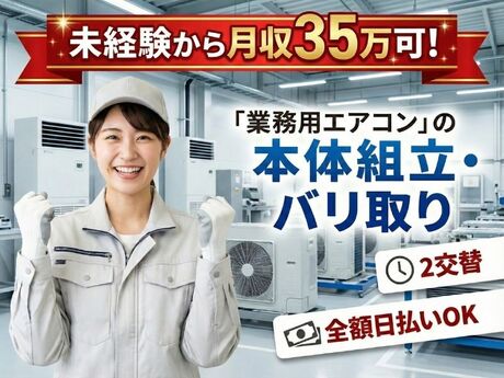 【ア】未経験から月収35万可!「業務用エアコン」の本体組立・バリ取り■2交替/全額日払いOK